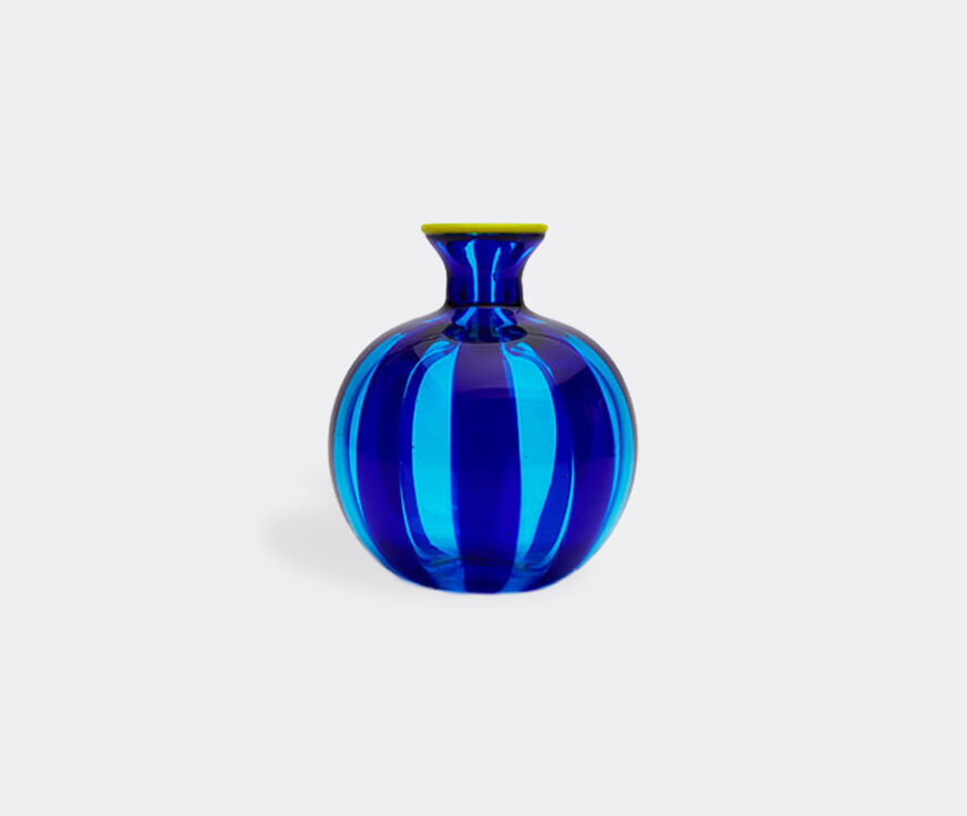Petite and perky, La DoubleJ's 'Ciccio' vases are one-of-a-kind pieces that pack a huge punch, whichever environment they may be placed in. This mini version of the spherical vessel presents hand blown Murano glass that offers a striking silhouette by way of an exaggeratedly bulbous base and a thin, elegant neck. Alternating stripes of blue and aquamarine bring a ridged surface to life for an artisanal production that beckons further inspection.