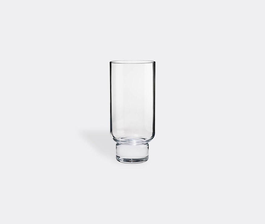 Joe Colombo's 'Clessidra' vase is taken from an original drawing by the designer, dating to 1969 and epitomizing the smooth display of shape, light and scale that the prolific Italian designer was known for. Produced by Karakter, this large version of the vase stands out for its striking silhouette, which is married with clear glass and a light base for a vessel that elevates floral arrangements to a real focal point.