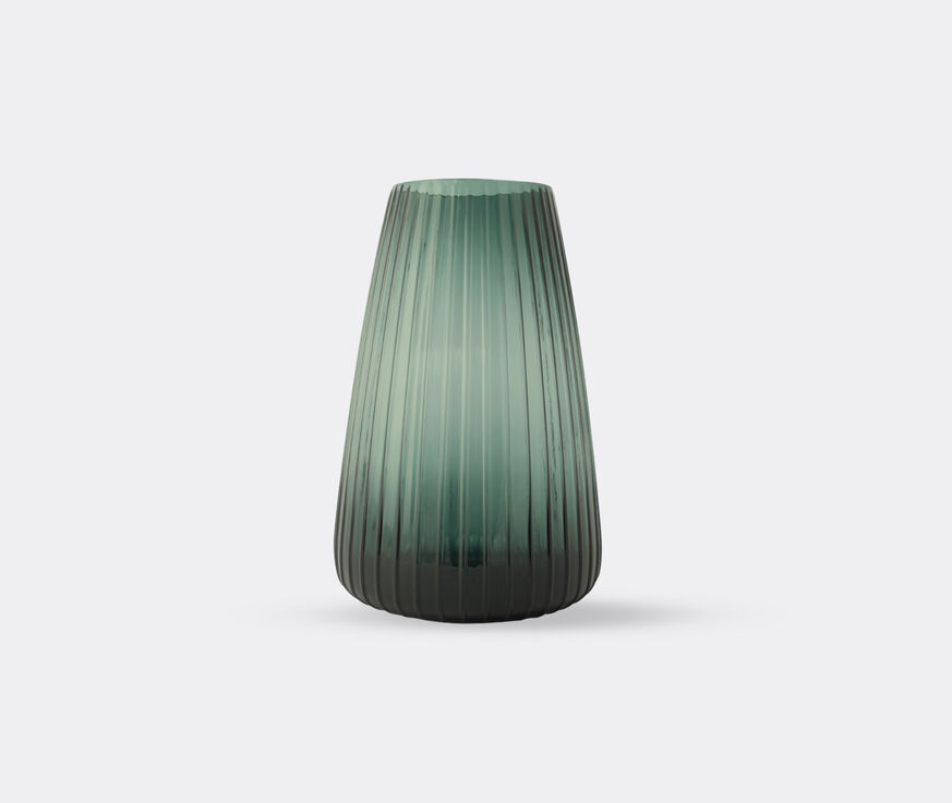 This beautifully ribbed vase by XLBoom manifests in a seed-like form with subtle surface detail that catches the light. The organic feel of this transparent piece is reflected in its verdant green pigment. The simple and elegant 'Dim Stripe' vase in extra large, designed by GL&Ann for the Belgian brand, captivates when filled with fresh blooms.