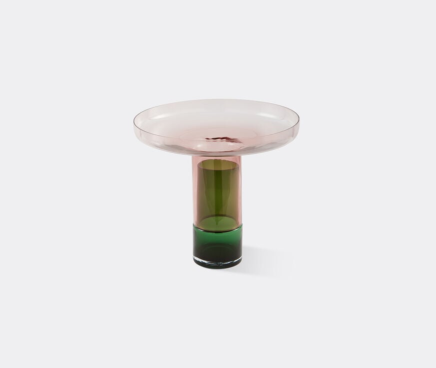 With its surprising silhouette, this unique vase by Polspotten opens out into a shallow bowl or disk. With the spout and body of the vase imagined as separate pieces, 'Formy' comes together in a design that is both one piece and two, both seamless and segmented. Part pink, part green, and a fusion of both colors, this captivating vessel is part of a series by the lively Dutch brand, which celebrates the creative potential of glassblowing. Clean shapes and transparent glass give floral displays an ultra-fresh feel. Whether filled with flowers or displayed in its own right, 'Formy' inspires curiosity and adds color and character to rooms.