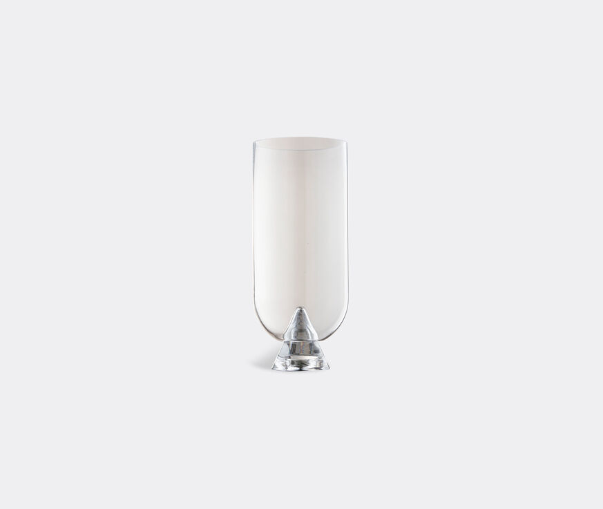A clear glass vase with a unique shape, this piece by AYTM recalls the solemn silhouette of an iceberg breaking through the surface of the ocean. Not only reflected in the vessel's name — 'Glacies' — the glacial inspiration behind this item is also evident in its application of crisp lines and a unique shape that allows the vase to stand gracefully with or without flowers.
