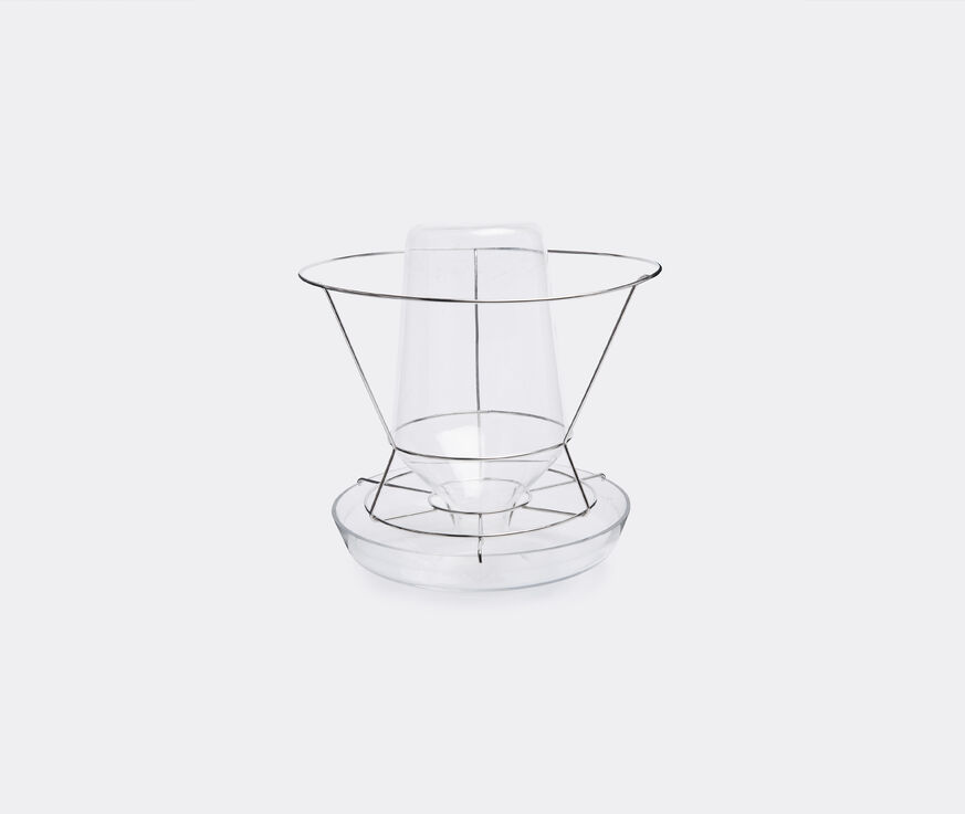 The product of what was originally a research project, 'Hidden' vase' was born from designer Chris Kabel's investigation into the possibilities of making a vase seem to disappear. The project — in collaboration with Spanish publication The Plant — led Kabel to place flowers around water containers, rather than in them, giving the illusion of each stem growing directly from the base plate and emphasising their beauty. This one-off piece is taken from the collection by Valerie_objects, and brings together stoneware, glass and stainless steel.