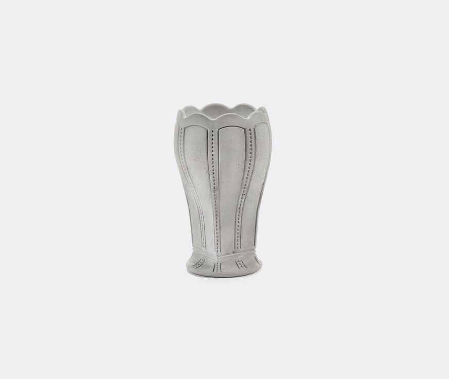 The 'Josephine' vase is fashion designer Kris Van Assche's tribute to his beloved grandmother, a woman who inspired both his love of fashion and a well-dressed table. This striking concrete design is presented in a natural gray. The raw, industrial material is juxtaposed with a scalloped opening, and delicate decorative impressions throughout. Panels and dotted lines add dimension and character to the piece. Elegant and surprising, the gray 'Josephine' vase by Serax can be filled with a bouquet of fresh or dried blooms.