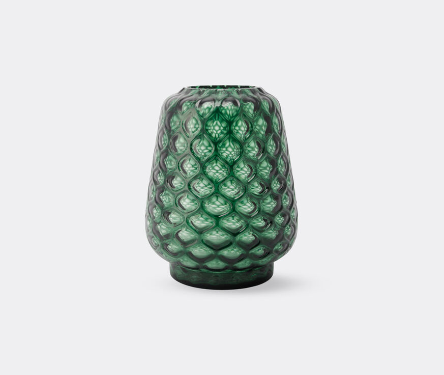 XLBoom juxtaposes fragility and strength in the 'Kuro Prism' vase. Defined by a tessellated pattern, a textured outer layer appears to be stretched over the vessel, like a decorative reinforcement. The structure creates a stunning play of light and depth inside each cell for an absorbing final design. The geometric pattern is echoed in the object’s simple form and symmetry. This large vase, envisioned by GJ&Ann for the Belgian brand, is a striking addition to any space. Presented in a bright moss green, 'Kuro Prism' captivates when filled with fresh florals and leaves.