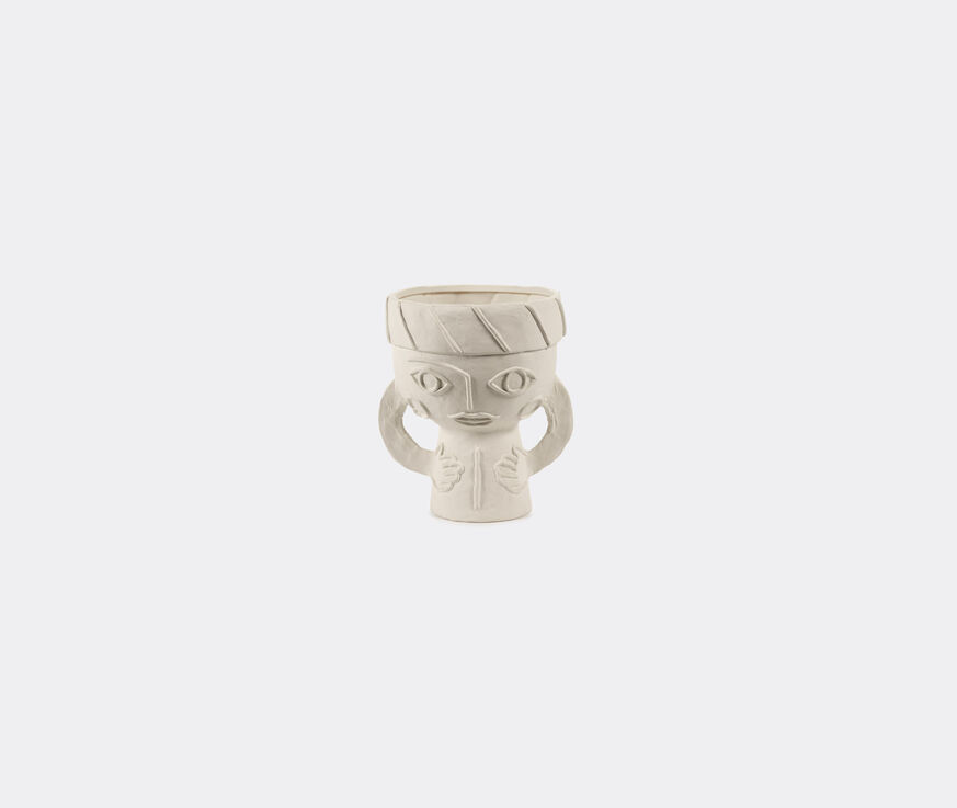 Taken from Marie Michielssen's 'Les Femmes' series for Serax, one of many collection produced in collaboration with the Belgian brand, this vase presents a compelling contrast. Characterized by an intriguing softness, as witnessed in small details such as decorative elements on the figure's clothing and headwear, the feminine form also offers a inherent strength, which Michielssen says runs through the entire collection. The hands and eyes, too, play a central and familiar role in the image of this character, further emphasizing a mood of humanity and kindness. The result is a clay vessel that is equal parts muted and impactful — this small, wide version, 'Les Femmes 02', is presented in beige and has a transparent matte glaze applied to both the interior and base.