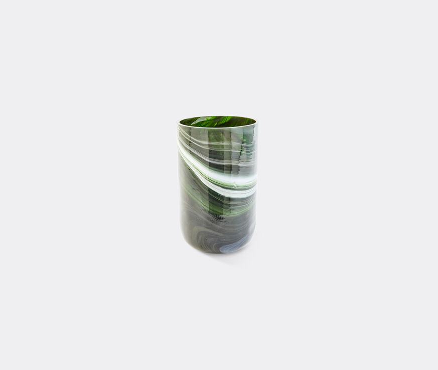 Crafted from mouth-blown glass, this marble-effect vase by Polspotten is a sculptural statement in its own right. The design is characterized by the mellifluous movement of the patterning, and the subtle interplay of color, as jade green blends with a soft mineral white. Whether filled with fresh flowers, or displayed alone, the medium 'Marbled Glass' vase infuses rooms and bouquets with a graceful, organic feel.