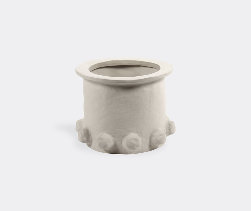 Designed by Marie Michielssen and produced by Serax, the 'Molly' series combines a collection of vessels defined by a seamless balance of rough and smooth. On the medium sized 'Molly 05' flower pot, a glazed interior is paired with a matte textured exterior, which is further accentuated by a raised rim and a series of round globes around the item's base. The result is a striking silhouette and a compelling duality of texture and shape.