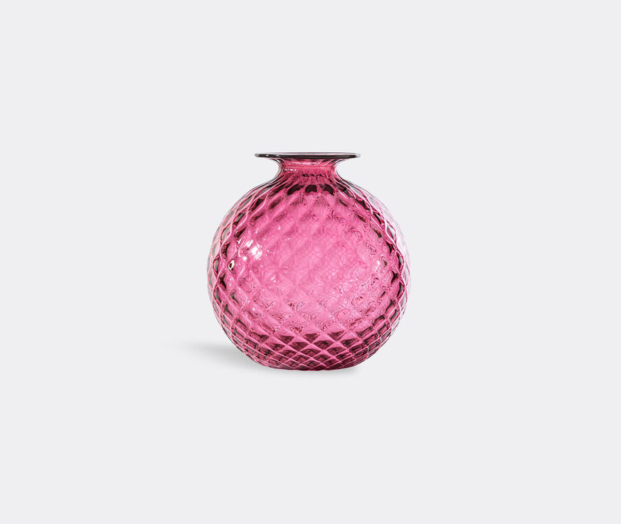 From an existing collection comes a bold new shade. Venini's 'Monofiore' vase is now presented in a striking tone of magenta for an elegant and memorable décor accent. This large version of the vase is softly etched with a raised crisscross pattern across its surface for a gentle impression.