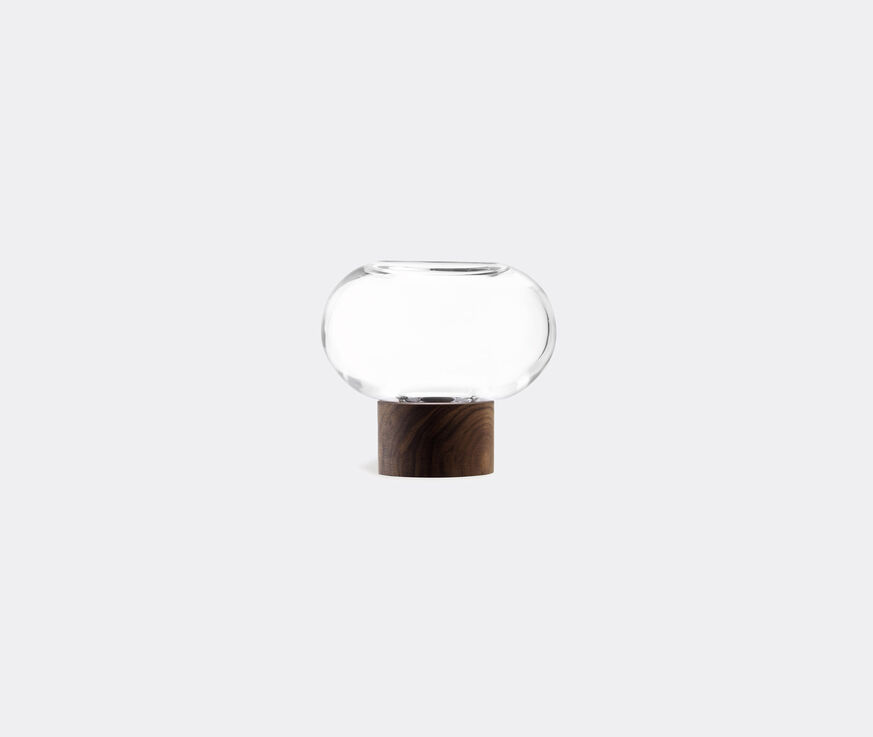 Fusing clear glass with walnut wood and a precise silhouette, LSA International's 'Oblate' vase is a distinctly contemporary piece that may also be used as a planter. Taken from a wider collection mouthblown glass vessels, the item stands out for its low, spherical shape, which is balanced on a cylindrical walnut base for a pleasing contrast of materials and forms.