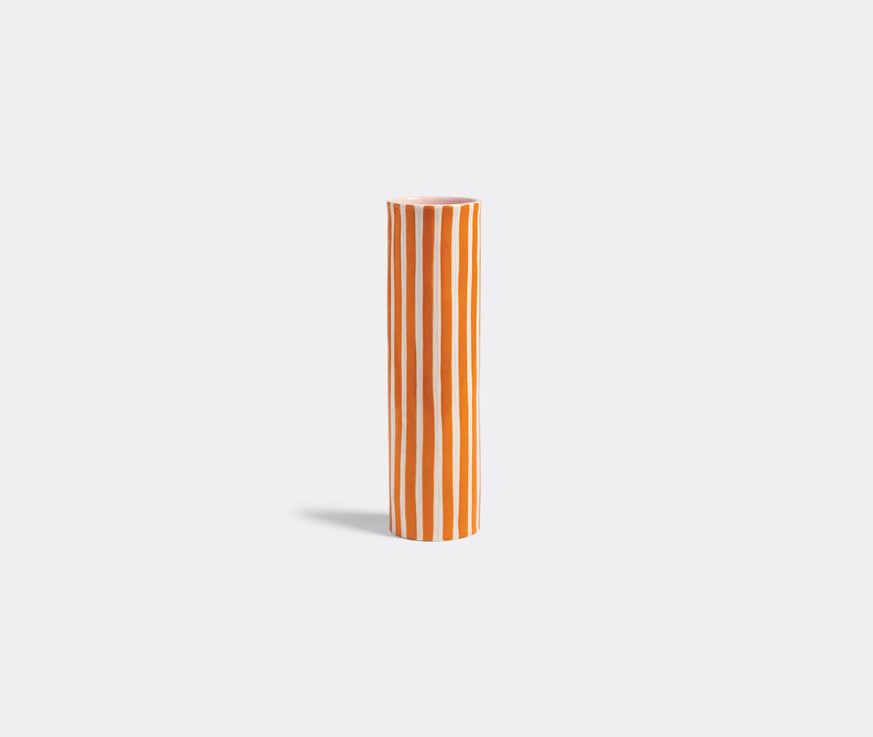 Whether incorporated into tableware by the spirited Dutch brand, or given space of its own, this slender statement vase by &k Amsterdam exudes character. Handpainted with a charming orange stripe, its slightly irregular shape enhances its uniqueness and artisanal feel. Accents of pastel pink are reflected in the pattern and interior glaze. Envisioned by &k Amsterdam, the 'Ray' vase can be combined with items from the 'Boavista' collection to stunning effect, or simply filled with fresh blooms.