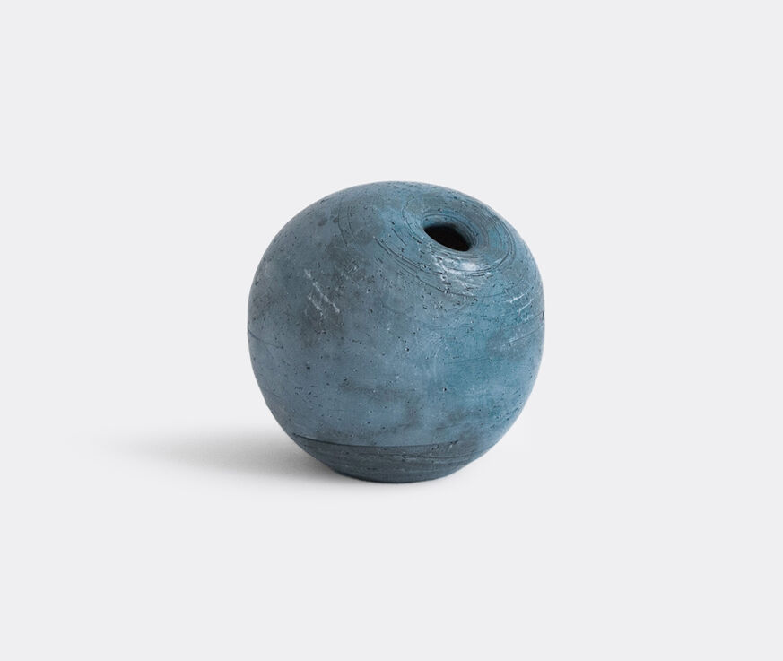 Pasta grés chamotada — a highly textured clay body — forms the base of the 'Salt Vase' series, the result of a beautiful experiment between producers Origin Made, designers Ladies & Gentlemen Studio and ceramicist João Lourenço. Adding metallic salts to the firing of this material, Lourenço has created a duo of vases that are defined by gentle gradients of color, here in light cobalt blue, which, in conjunction with the vessel's spherical shape, takes on a compelling, planetary guise.