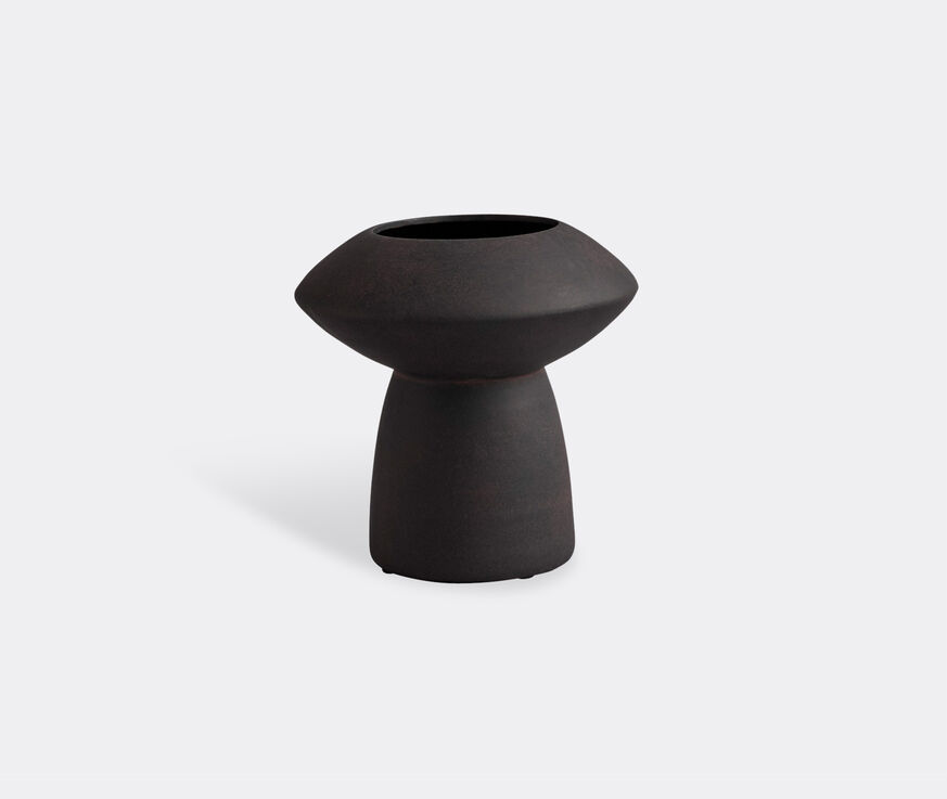 In its combination of unique silhouettes and textures, 101 Copenhagen's 'Sphere' vase collection offers a impactful sculptural presence. Each crafted from hand glazed ceramic, the vessels were designed and developed by Kristian Sofus Hansen and Tommy Hyldahl in collaboration with skilled ceramicists, and have since becomes a signature of the brand thanks to their ornate detailing and precise contrast between smooth shapes and sharp edges. This fat version of the square vase is inspired by ancient Chinese vessels and presents its own unique variations in tone and texture due to its handmade nature. Non-waterproof.