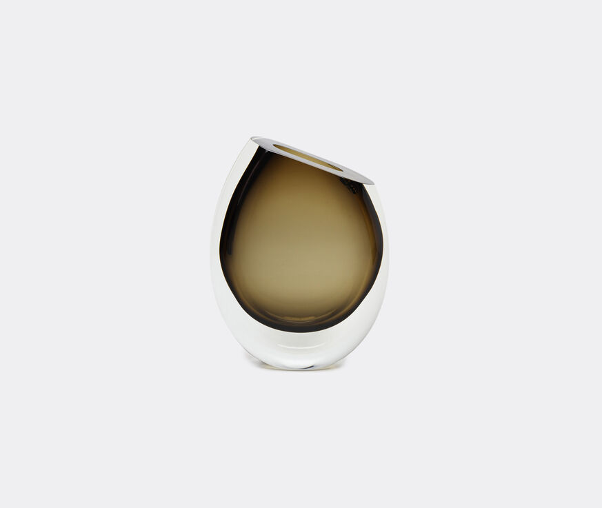 A seamless merger of clear glass with shades of fumé, Seguso's 'Vase 96' for Gardeco is minimalist yet memorable. Defined by a clean, circular silhouette where an inner brown bowl appears ensconced within a clear outer vessel, the mouth blown vase is a contemporary touch suited to modern spaces. In a graceful flourish, mouth of the tall vase is cut on the diagonal for a compelling dimension to floral displays.