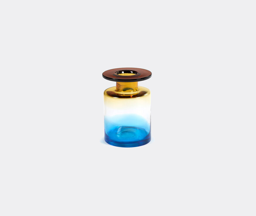 The glass translation of Marie Michielssen's papier mâché 'Earth' vases for Serax, the 'Wind & Fire' collection features a series of vessels that take inspiration from the distinct shape of old pharmacy jars. The resulting series presents compelling pieces like this medium cylindrical vase, where the glass' soft gradient from light blue to amber has a pleasingly soothing effect.