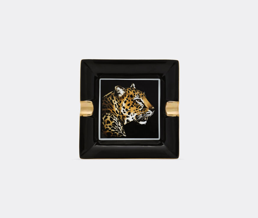 A Dolce & Gabbana staple, the leopard print features heavily in the Italian label's ready-to-wear collections. This undeniable strand in the DNA of the brand now takes center stage on this elegant ashtray 8n closeup detail, where is it married with high quality porcelain for a timeless charm. In addition to a logo on its back and raised surface details — the result of a carefully hand applied glaze — the three times fired square ashtray also features hand applied gold detailing on its rim for a celebratory testament to Italian craftsmanship.