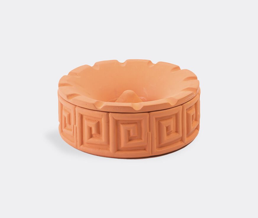 Created for outdoor spaces, such as terraces and gardens, as well as living rooms and entrance halls, Antonio Aricò's 'Magna Graecia' collection for Seletti harks to the world of ancient Greece for a deeply rooted sense of Mediterranean tradition. Crafted from terracotta — a universally recognized material and long associated with southern European aesthetics — the whimsical 'Greche' ashtray is sculpted with a geometric pattern that nods to Doric and Ionic motifs, but through a contemporary lens.