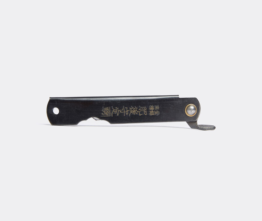 A piece of history, built to live well into the future. Banshu Hamono's 'Blue Steel' Japanese pocket knife, is based on a shape that has not changed since the Meiji period. Created by Motosuke Nagao, a fourth generation crafter and the last remaining Higonokami master of his generation, the versatile brass knife presents a precious piece of history and craftsmanship. With a handle made from brass and a black oxide finish stainless steel blade, the knife embodies the Higonokami's identity as an humble and daily tool, which can be refined and honed at home by users with regular sharpening and polishing. Wholly handmade, this medium-sized knife may feature some small imperfections — a testament to Nagao's fully hands on production process.