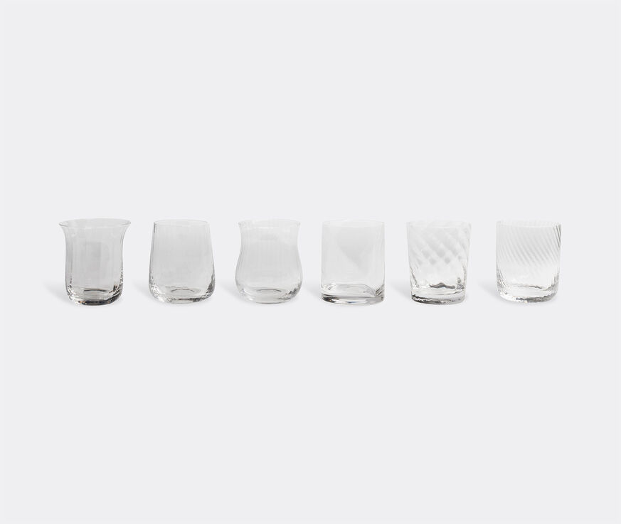 Bitossi's set of six hand-blown tumblers combines a mix of shapes with distinct surface patterns for a diverse yet unified collection of glasses. Bubbles are part of the charm of a hand-blown piece and add character to each glass. Dishwasher safe.