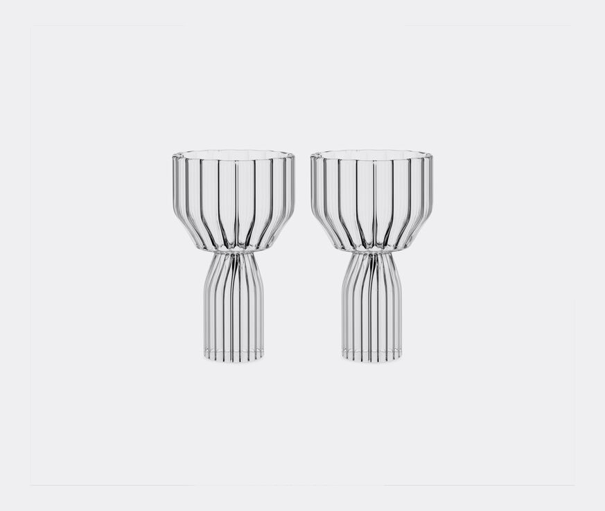 Combining intricate detailing with innovative production techniques and materials, Fferrone's 'Margot' collection presents a new take on cut glass. Each 450ml water goblet offers two vessels — one in place of a traditional stem — formed from fluted borosilicate glass created without the use of moulds. The result is a glassware duo that is equally suited to both everyday and formal settings.