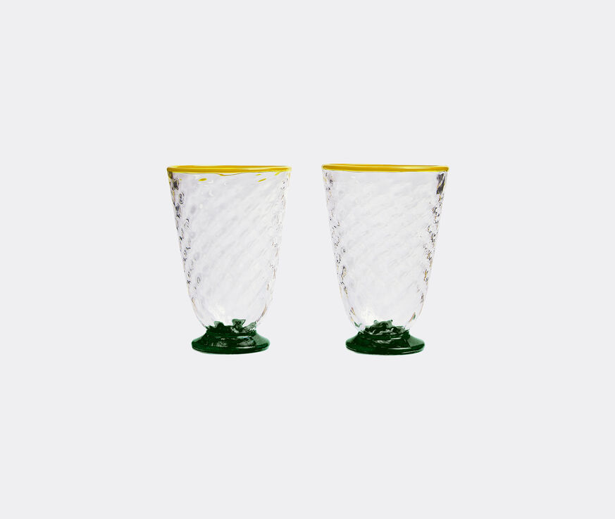The 'Quilted' glass, with its bold texture and potent contrasting color accents, encapsultes the personality of Milanese lifestyle brand, La DoubleJ. The sculpted finish of this delightful design, which comes as a set of two, is intricately crafted in Venice from hand-blown Murano glass. The green and yellow 'Quilted' glass can be incorporated into simpler table set ups, or mixed and matched with other La DoubleJ glassware.