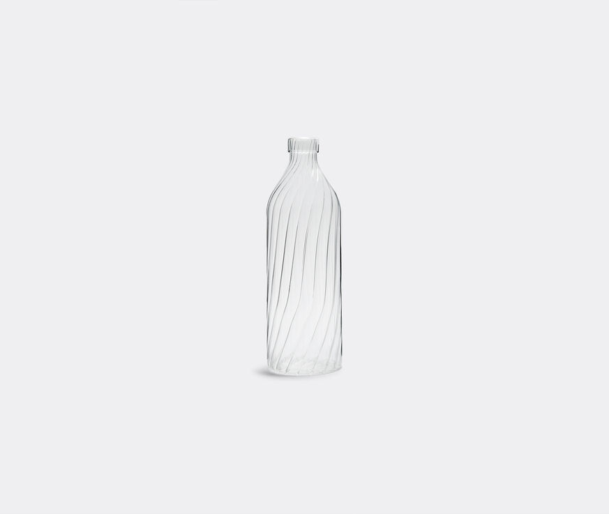 Featuring a hypnotic linear pattern that curves around its circumference, this eye-catching bottle was designed by Corrado Dotti for Ichendorf Milano. A sculptural re-interpretation of the ubiquitous plastic bottle, the tall vessel is handmade in Italy from high-quality glass and belongs to Dotti's 'Venezia Ottico' collection for the Italian brand.