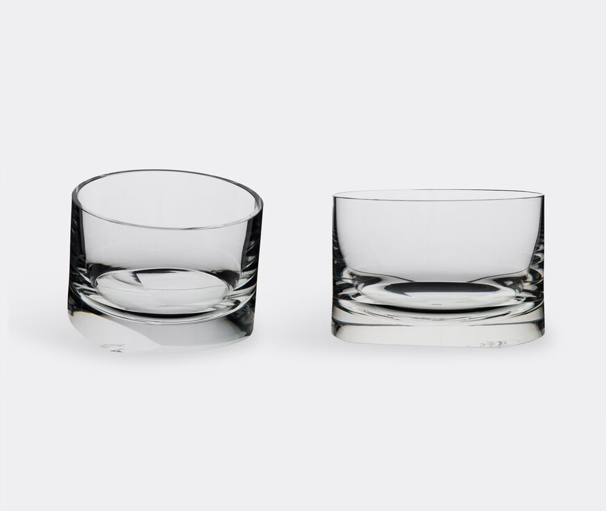 With their uneven bases, Rony Plesl's 'Whiskey Xy' glasses offer a lesson in geometry and balance. Each glass bottom is cut at an angle so that only one third of the base makes contact with any flat surface. Despite this, the mouth-blown crystal glass tumblers stand titled, yet completely secure.