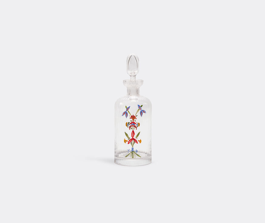 Featuring motifs inspired by vintage textiles uncovered by Cabana, Casa Cabana's 'Gulistan' glass bottle nods to the joy of spring. As such, pastel colors and hand painted floral motifs are joined with hand blown Murano glass for a charming piece that merges artisanship, high quality materials and heritage. Supplied with a stopper, the bottle can be used to serve oil or as a vase for very small floral arrangements.
