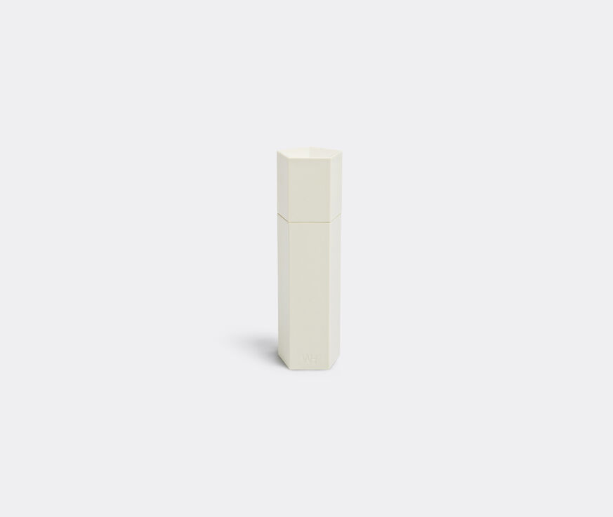 Forming a tall pentagonal column, the Ori ceramic grinder by Anderssen and Voll is in equal parts a functional tabletop tool and a slick contemporary ornament. Suitable for crushing both salt and pepper, the light grey grinder has a matt finish.