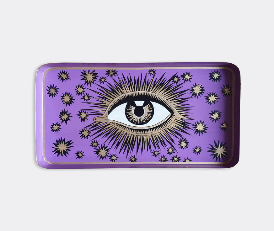 In many cultures, the eye represents protection and shelter — for Italian brand Les Ottomans it manifests in the shape of a hand painted feature on this iron tray. Combining shades of purple, gold and black for a magical finish, the rectangular tray is suited to holding small trinkets.