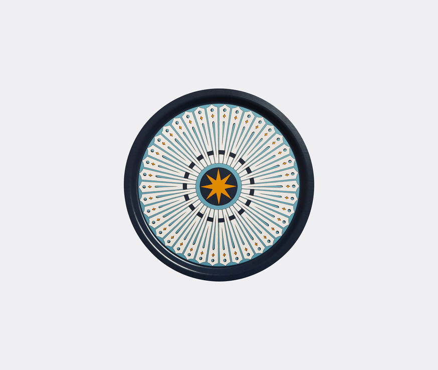 The ancient symbol of the sun shines through a series of resplendent tableware designs by La DoubleJ. Uplifting and versatile, designs draw the power and spirit of the sun to tables all year. Shades of burning red, saffron and gold glean throughout the collection in solar wheels and geometric flame motifs. The multicolor 'Feria' tray — with its eight-point astral centre — is crafted from laminated FSC-certified birchwood. This cool, graphic tableware accent is perfectly suited to the serving of apéritifs or small plates when dining inside or out, and can equally function as a decorative item to hold small trinkets.