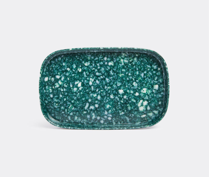 Comprising various pieces of kitchenware crafted from durable melamine, Hay's 'Fleck' series is a practical combination of contemporary aesthetics and functionality. Defined by a distinctive marbled green pattern on its surface, this tray can be utilised in a range of ways.