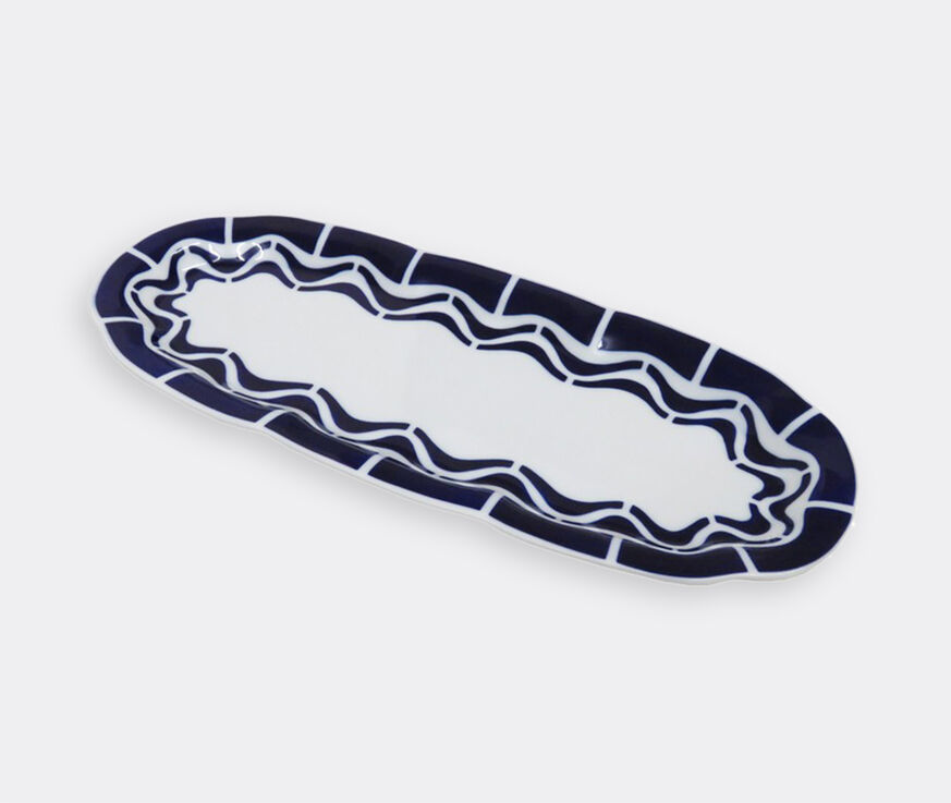 Sargadelos' designers looked to the Galician coast and its sheer cliffs for inspiration for the design of the 'Marbadas' bread tray. The result is a rolling blue motif that could only be inspired by nature, which is applied to an elongated white ceramic tray designed to accommodate bread. Dishwasher and microwave safe.