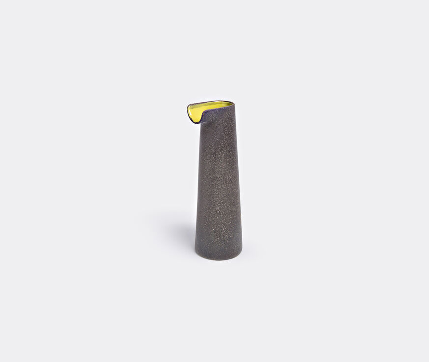 The Tube carafe was designed for Paola C. by Zaven, the Italian studio founded by Enrica Cavarzan and Marco Zavagno. The elegant black ceramic piece features a tactile, grainy surface and a mustard interior. It comes in two sizes and it is also available in a turquoise interior.