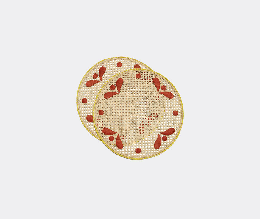 Inspired by al fresco summers spent on the island of Capri, this textured raffia placemat by La DoubleJ — with its bold red, folk detailing — gives a warm, natural touch to tables. Crafted from the Iraca palm, in collaboration with artisanal partners in Colombia, the 'Capri Mattone' placemat, which comes as a set of two, is hand-woven and charmingly stamped with an embossed Totumo fruit label.