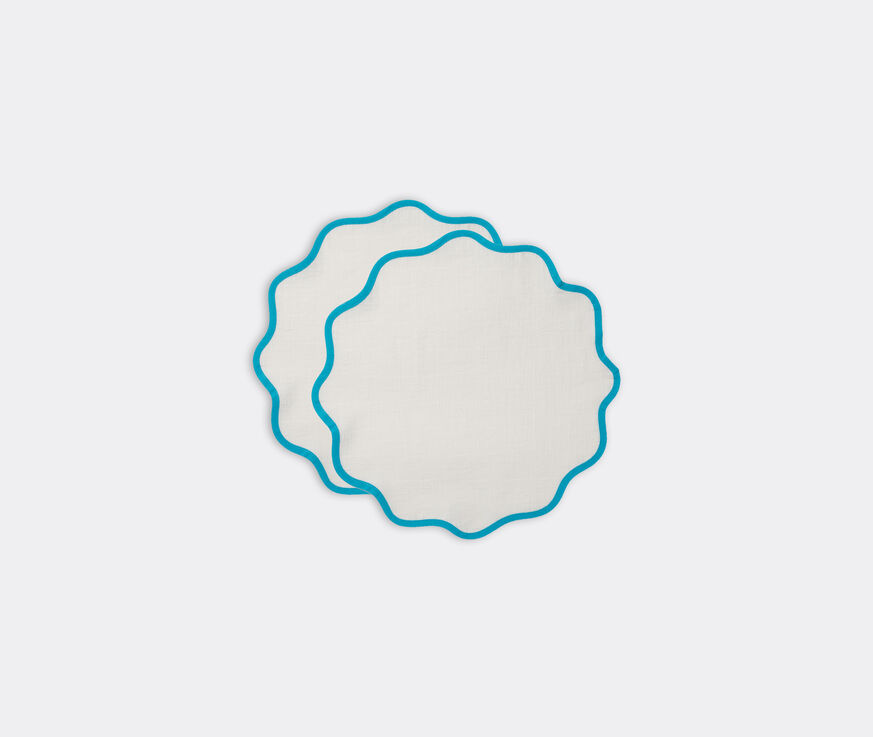 Imbuing table settings with an immediate sense of elegance and romance, La DoubleJ's ' Cloud' tablemats offer a subtle nod to the opulence of the Mediterranean. These two undulating tablemats are cut from 100% Italian made white linen with a contrasting trim in a memorable shade of light blue that together make for a perfect base upon which to build charming tablescapes.