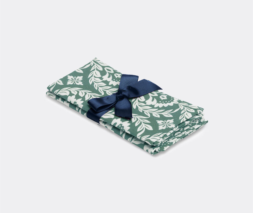 Created as an ode to Milan, La DoubleJ's hometown, this duo of large 'Green Garland' napkins offers a memorable and punchy accent to dining tables. Boldly decorated with a clean and contemporary garland in shades of white and green the two napkins are cut from 100% linen and can be paired with La DoubleJ tableware, placemats and tablecloths for a maximalist heaven, though they are equally suited to stand alone as a perky accent on a white tablecloth. Due to their handmade nature, the large napkins may feature small natural irregularities, such as small knots in the yarn.