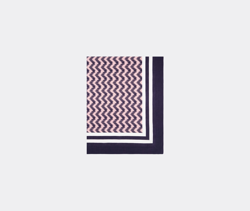 This timeless yet hypnotic tablecloth appears as part of Aquazzura Casa’s 'Jaipur' collection. With its deep border, contrasting colorway — including a background tone that pays homage to the "Pink City" — and its dramatic geometric patterning throughout, the large version of this tablecloth sets the stage for an array of arresting tablescapes. The design is finished with crisp English corners for an elegant drape.