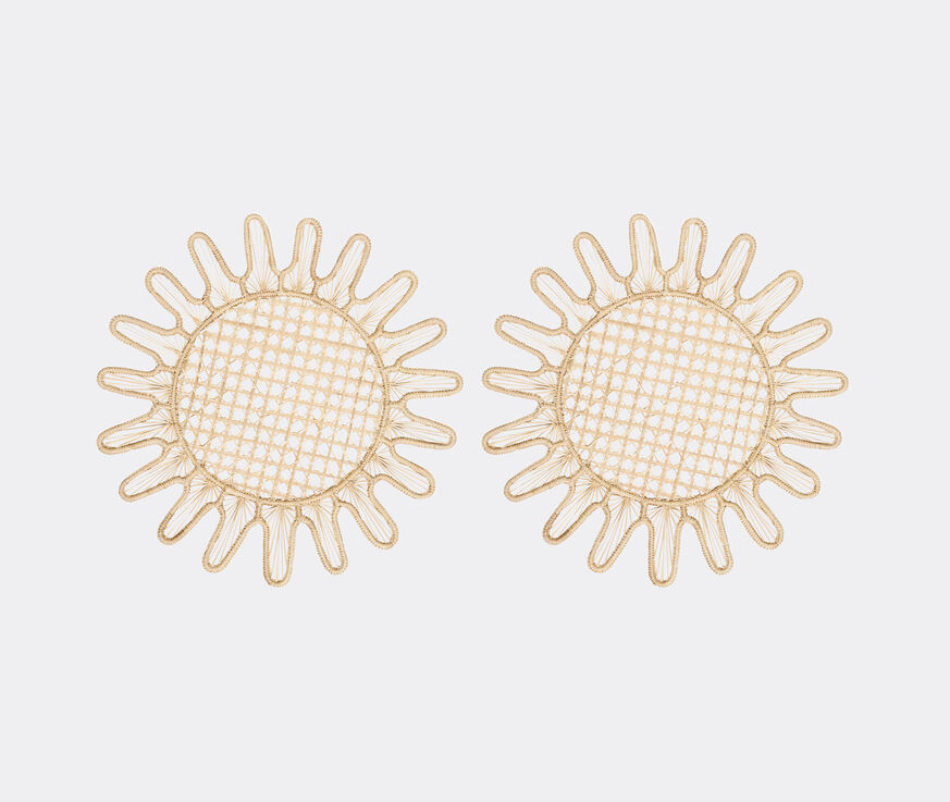 Handwoven by artisans in Colombia, the 'Kyma' placemat set of two by THEMIS Z is sustainably woven from the vegetable fibre of Iraka palm. Offered in a natural tone, this arresting design is characterized by an elaborate edge, strengthened and supported with wire. The soothing yet animated lines recall the movement and mood of the Aegean sea. Maximize the aesthetic with other tableware from the THEMIS Z collection.
