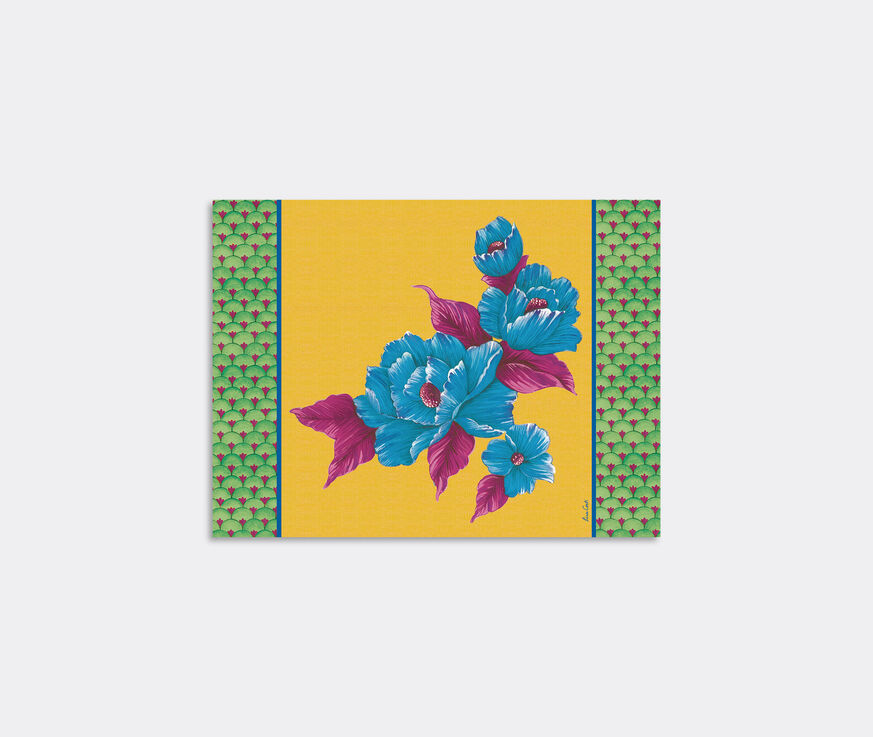 Bold and joyful, Lisa Corti's placemats are easily collectible pieces, thanks to the diversity in shape, pattern and color available. This pair of rectangular placemats is defined by the lively 'Masonite' in azelea green motif, a striking mix of green, yellow and fuchsia tones, punctuated by an arrangement of blue blooms. Cut from a wood fiber and cork mix, the set can be mixed and matched with other colors and shapes from the same collection for a mesmerizing set-up.