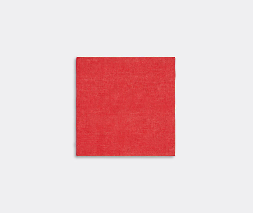 Defined by their flashes of bold color and fine craftsmanship, Lisa Corti's textiles are easily collectible and yet suited to everyday use. This set of six square napkins are woven from 100% cotton and colored in a striking shade of red that can be mixed with other pieces for a mosaic effect on the table.