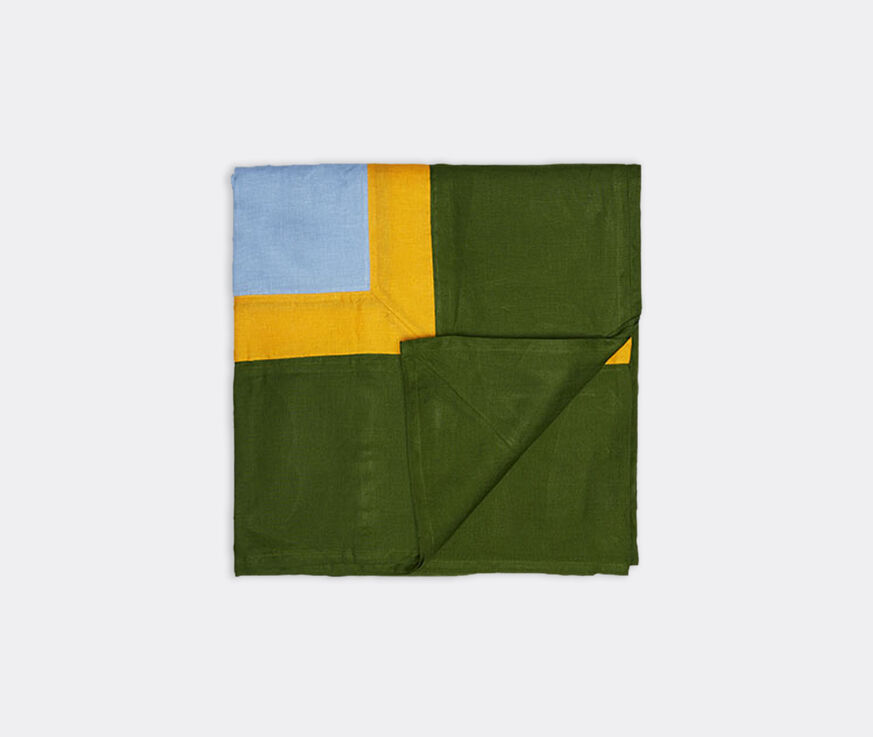 Bold in color yet simple in layout, La DoubleJ's 'Rainbow Sky' tablecloth is a versatile piece that can be dressed up or down. Defined by chunky color blocks in shades of green, blue and yellow, the large linen tablecloth is equally suited to layering with some of the brand's punchy patterned pieces, or minimalist accents from the same 'Rainbow' collection for a slightly more subdued approach. Designed to be used with care, the tablecloth bears some natural irregularities such as small knots in the yarn.