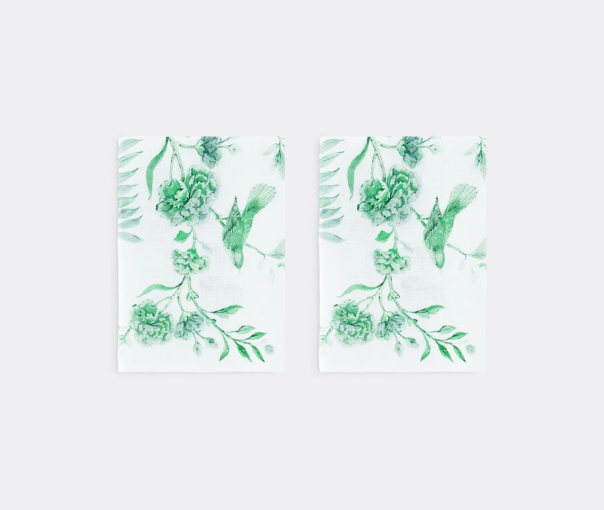 In Aquazzura Casa’s 'Secret Garden' collection, delicate boughs, blossoms, birds, bees, and butterflies coalesce in a naturalistic, ecstatic symphony. The collection includes this set of fine linen Italian-made napkins. In minute detail and finished with elegant English corners, the design can be blended with tableware from the series for a lush, abundant tablescape.