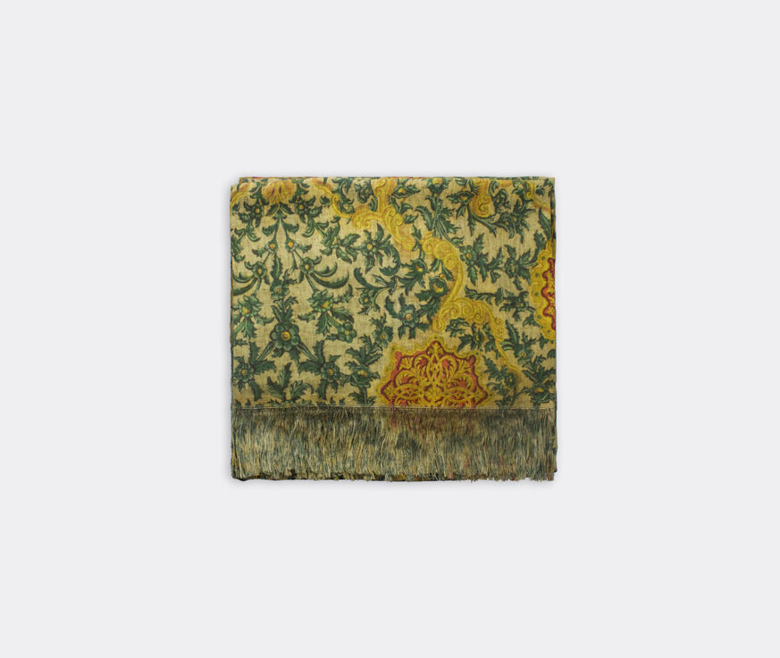 The House of Lyria presents this rustic tablecloth, which imparts dining spaces with a distinct softness and warmth. Woven from a linen, viscose and cotton mix, the coffee-dyed table cloth is defined by rich tones of gold and blue, and may be layered with other pieces from the brand's collection for an elegant tabletop.
