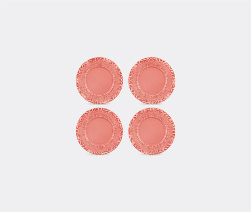 ‘Fantasia’ by Bordallo Pinheiro is an exercise in elegance. Delicate surface decoration adds depth and texture to this graceful collection. Reflecting traditional ceramic craft, ‘Fantasia’ is lovingly made from earthenware by artisans in Portugal. This timeless series, which includes this set of four dessert plates, can live among tableware in any color.