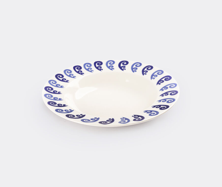 Artisanally crafted in Greece, the fine porcelain 'Athenee Peacock' soup plate is handpainted with lively swirls recalling the eyes of tail feathers. Bold blue monochrome against white brings Hellenic spirit to a clean, classic design. Maximize the aesthetic with other tableware from the THEMIS Z collection.