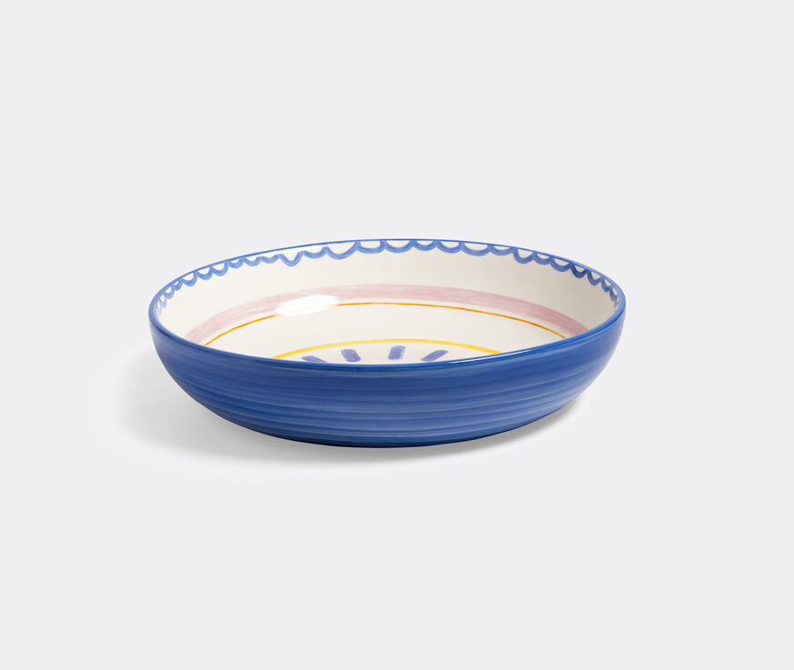 Part of a collection of tableware by &k Amsterdam, this porcelain salad bowl combines a lively design on the inside with a brushed, cool blue exterior. Tones of orange, yellow, blue and pink come together in an arrangement of single brushstrokes, composed of circles, lines and dots. Designed by &k Amsterdam, the 'Boavista' series captures the spirit and freedom of time spent by the sea. The multicolor 'Boavista' salad bowl enlivens tabletops, and can be paired with other pieces from the collection for the complete look.