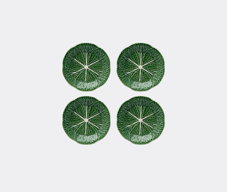 Rustic Portuguese charm meets refined dining in this iconic ‘Couve’ tableware by Bordallo Pinheiro. Using traditional ceramic techniques, these verdant hand-painted pieces are made in the workshop where Rafael Bordallo Pinheiro first realized them in the nineteenth-century, playfully insisting that rustic Portuguese life be invited to dine with the bourgeoisie. Deliciously fun and dedicated to craftsmanship, these almost-edible wild cabbage creations never go out of fashion. The charming collection includes this set of four dessert plates, which can be completed with pieces from the rest of the ‘Couve’ family for a lush, leafy statement.