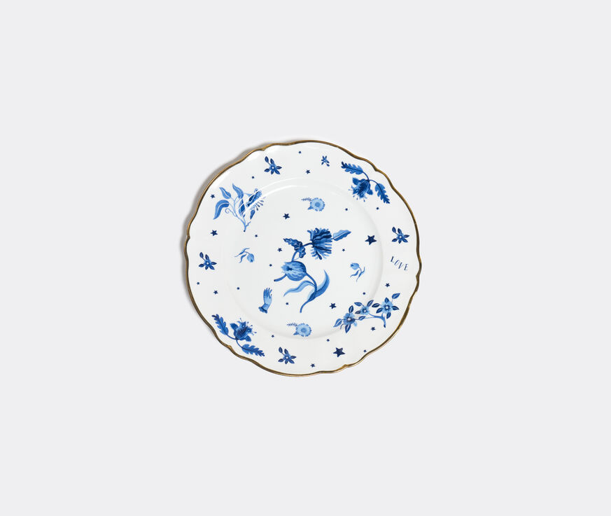 Blue floral illustrations, the word 'love' and an elegant gold rim come together on Bitossi Home's 'La Tavola Scomposta' round platter. Together they combine for a playful piece of dishwasher safe porcelain tableware that can be used in conjunction with other whimsical pieces from the 'La Tavola Scomposta' collection, where an abundance of floral and nature-inspired detailing adds an additional layer of imagination to the table. Not suitable for the microwave.