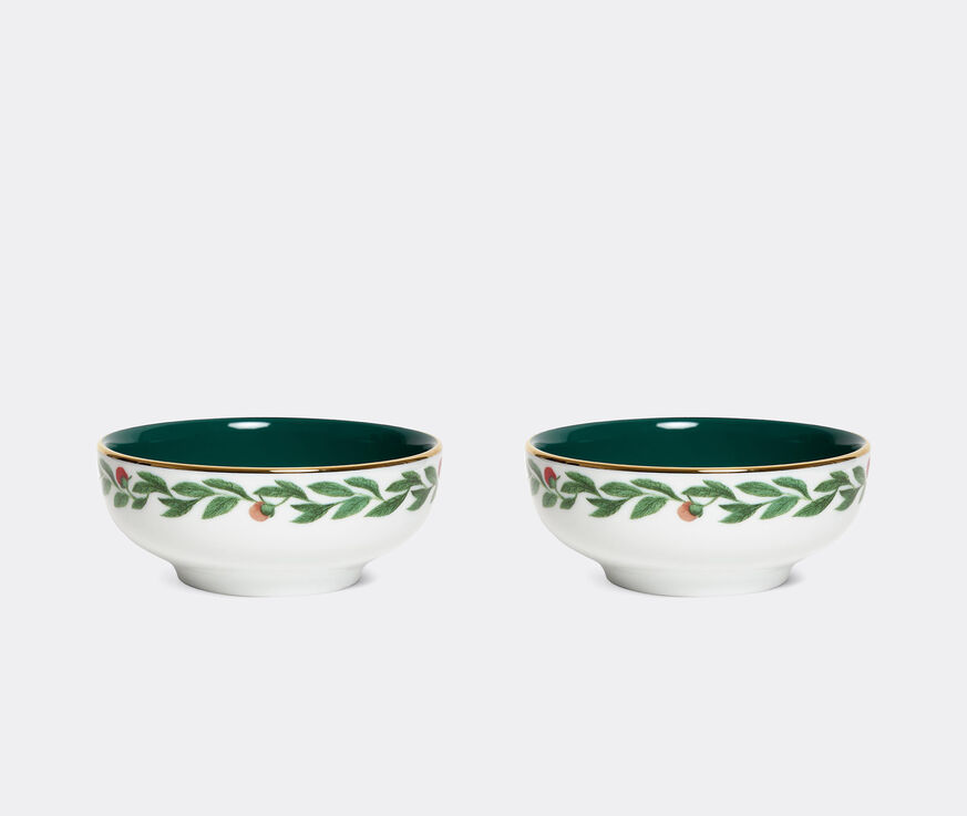A handpainted dragonfly is the subject of this enchanting snack bowl by La DoubleJ. Centered on fine, white porcelain, the libellula embodies the delicacy and beauty of the material, and is depicted in meticulous naturalistic detail in shades of pink and green. This graceful vessel is encircled with intricate botanical detailing, and features a deep green inner border and gilt edging. The 'Libellula' snack bowl, which comes as a set of two, is part of a collection of tableware, and can be paired with other pieces from the series for delightful displays.