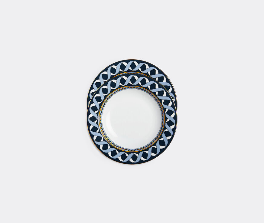 The brainchild of Italian ceramic giants Ancap and La DoubleJ, the 'Odysseus' soup plate set presents two pieces crafted from fine porcelain and hand finished with 18k rims. Decorated with the 'Odysseus' motif, a grand geometric print that presents itself on extra wide rims, both plates can be used alongside other tableware pieces from La DoubleJ's 'Napoli' collection.